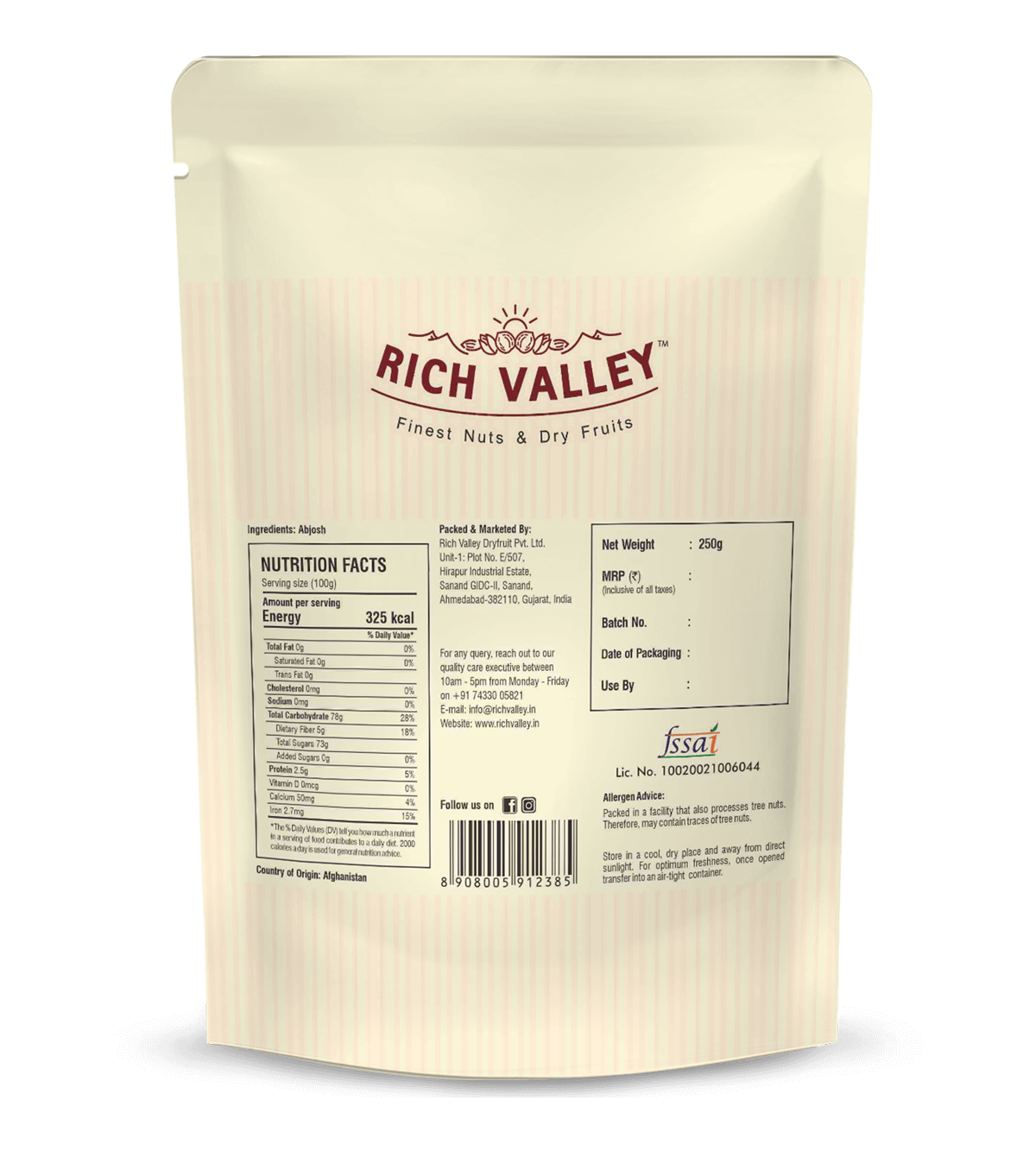 Packed with natural sugars, Afghani Abjosh is an instant energy booster. Whether you need a quick pick-me-up during a busy day or fuel before a workout, these raisins provide long-lasting energy without any artificial additives.