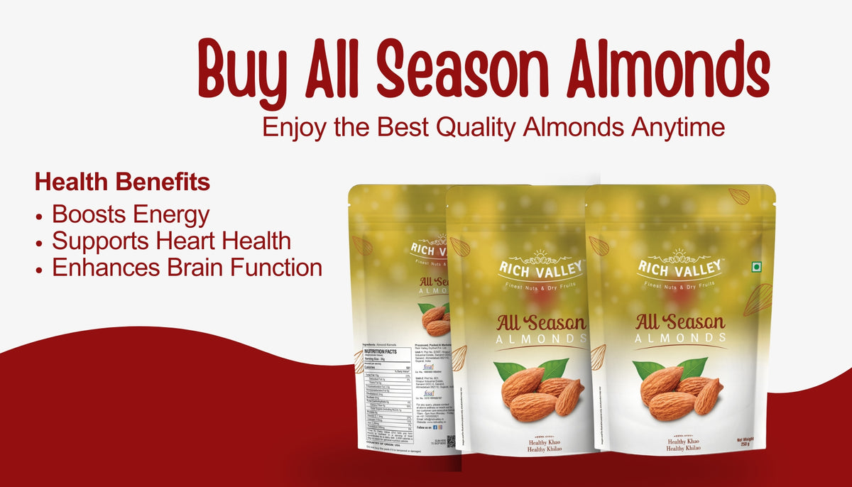 Premium Quality: 100% natural and fresh All Season Almonds.