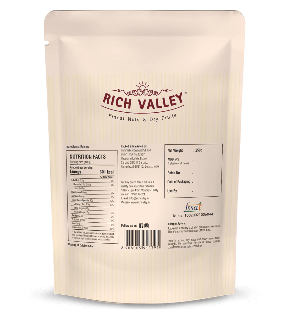With their rich content of natural sugars, Indian Raisins offer a quick energy boost without the crash. Whether you need a mid-day snack or a pre-workout fuel, these raisins are your go-to choice.