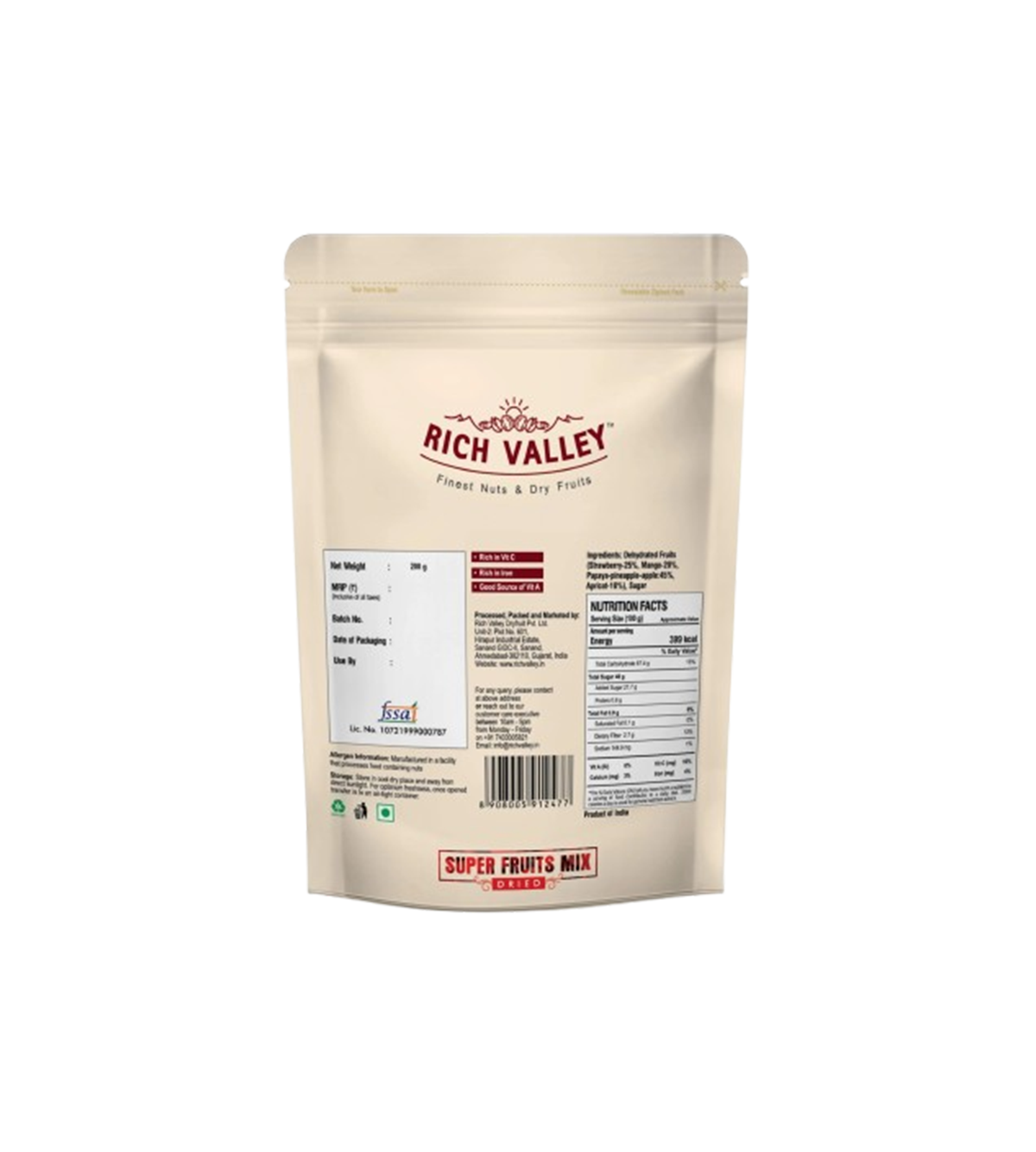 To maintain the freshness and natural flavors, Super Fruits Mix is carefully packaged in a resealable pouch. This ensures that the fruits remain soft, chewy, and delicious with every bite. Enjoy the same great taste and nutrition from the first to the last handful.